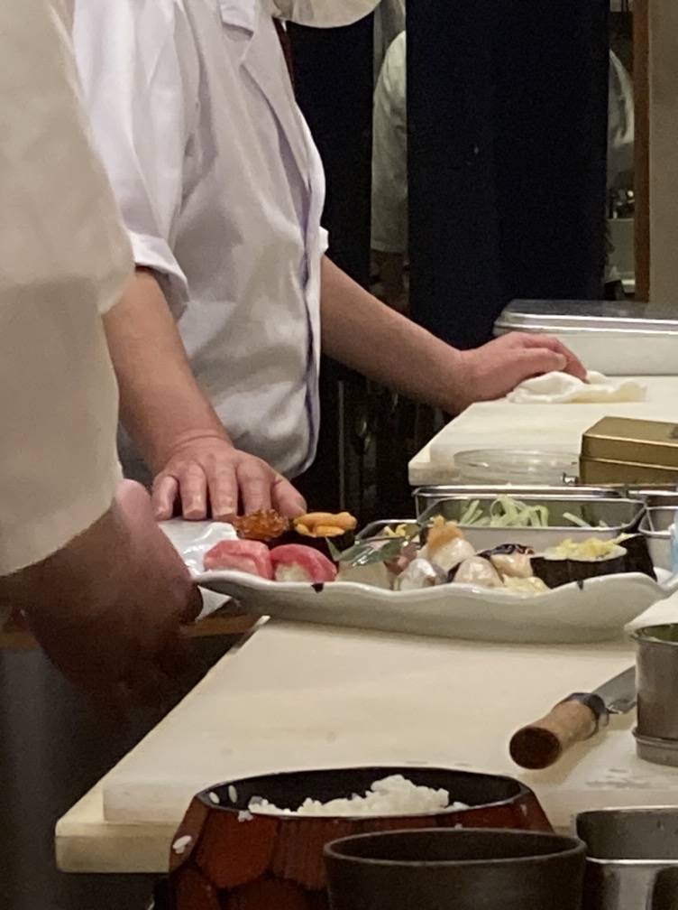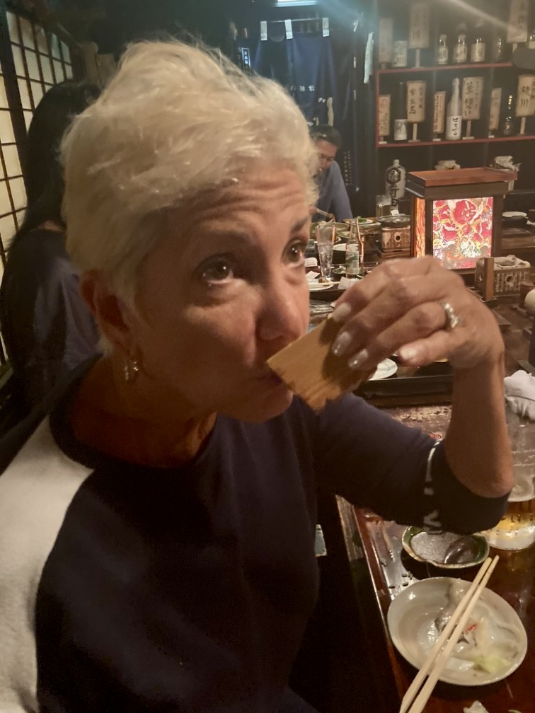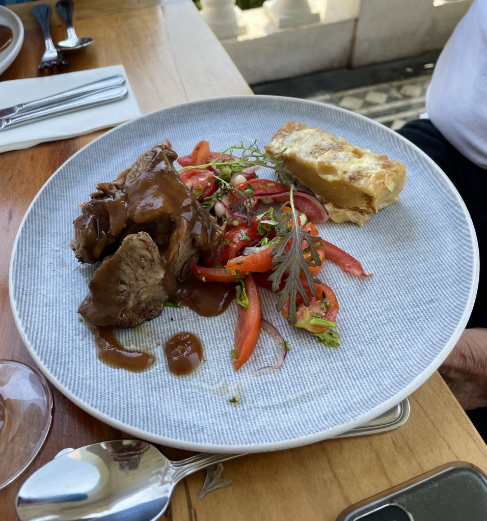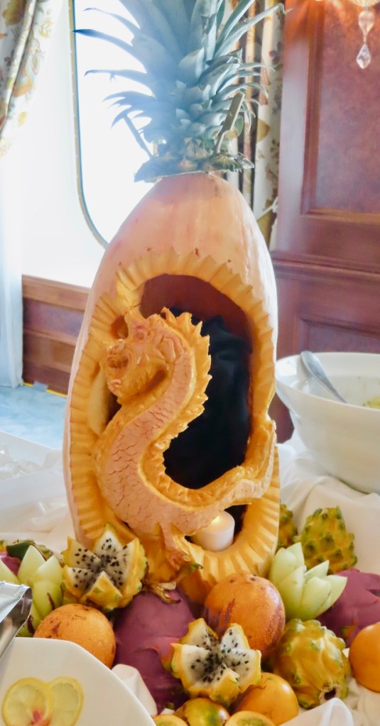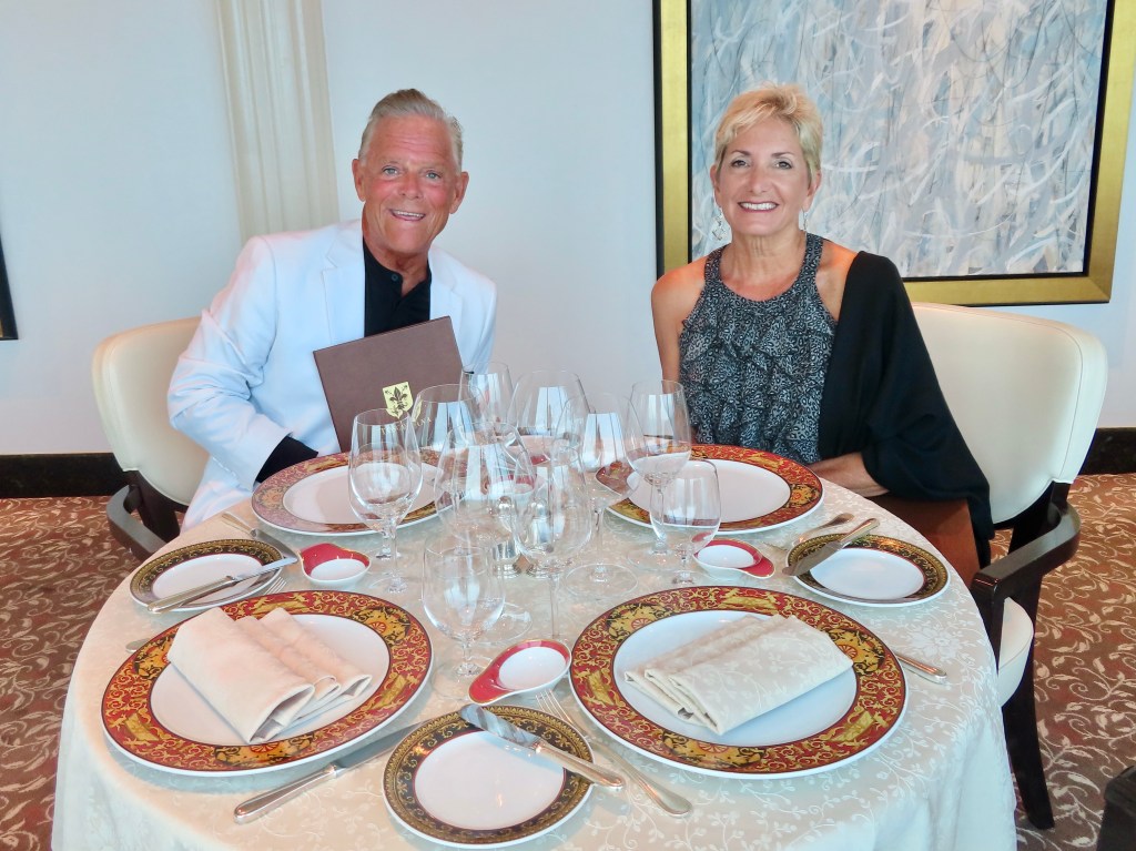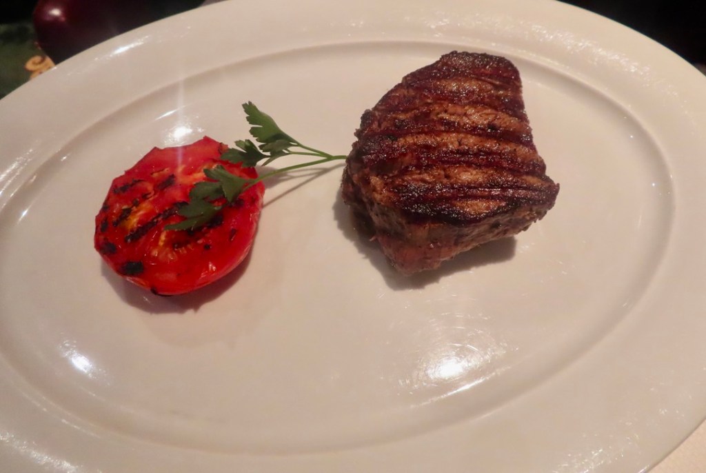 Dining alfresco on the ship, JD started off with some beautiful sushi, a tropical bean salad, and Sicilian anchovy crostini ( anchovies not one of my favorites, although the plate looked pretty). I had my fav sushi with carved leg of lamb, while JD continued to deplete the Maine lobster inventory. 🙂