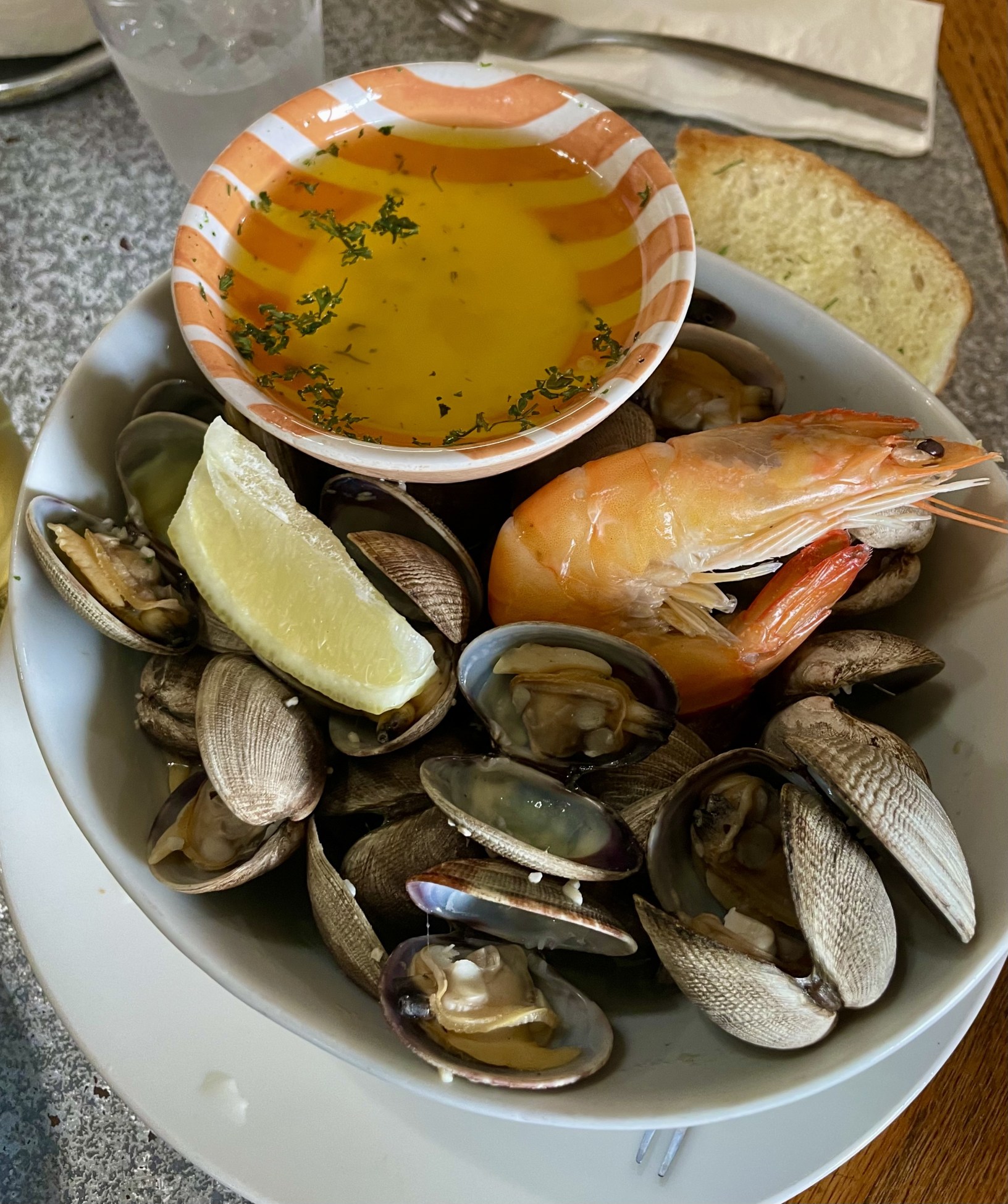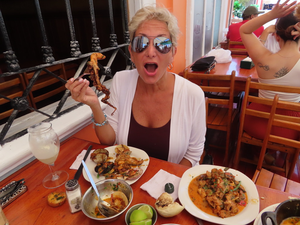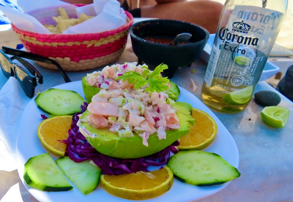 Angel, our waiter, brought us cold Corona’s with fresh lime and sea salt along with an avocado stuffed with fresh camarone and langostino.