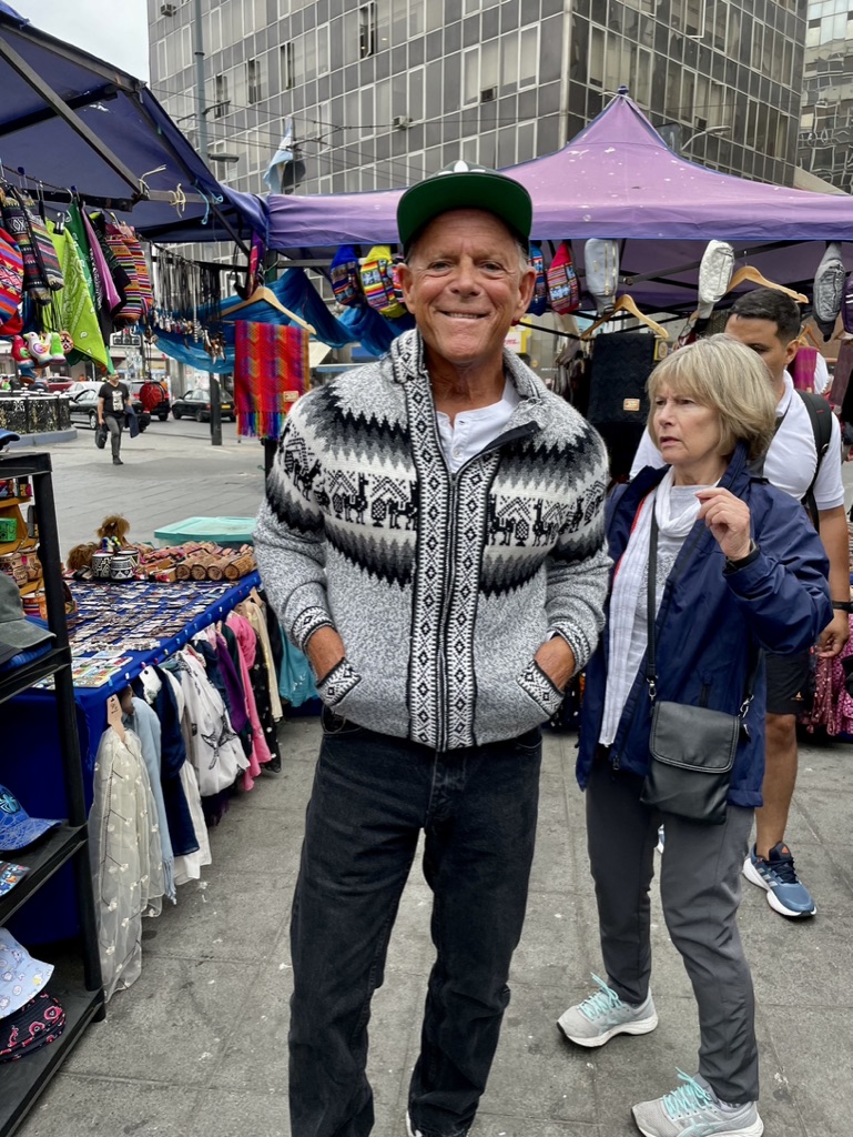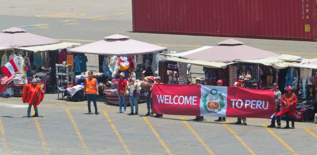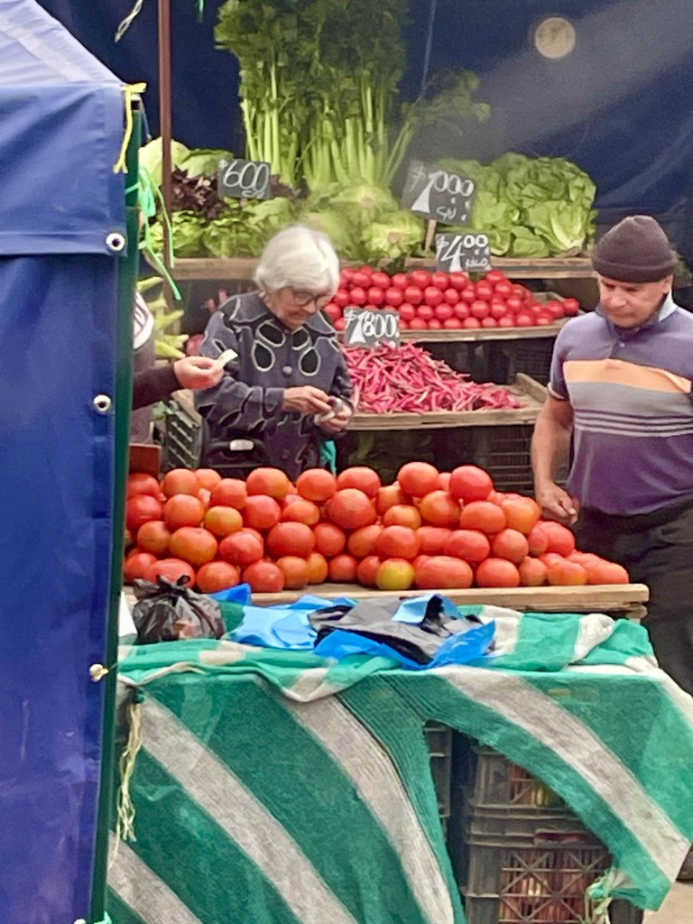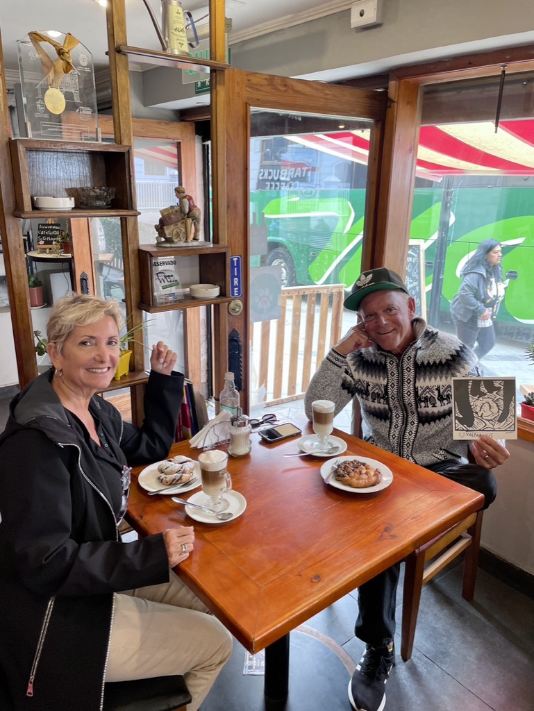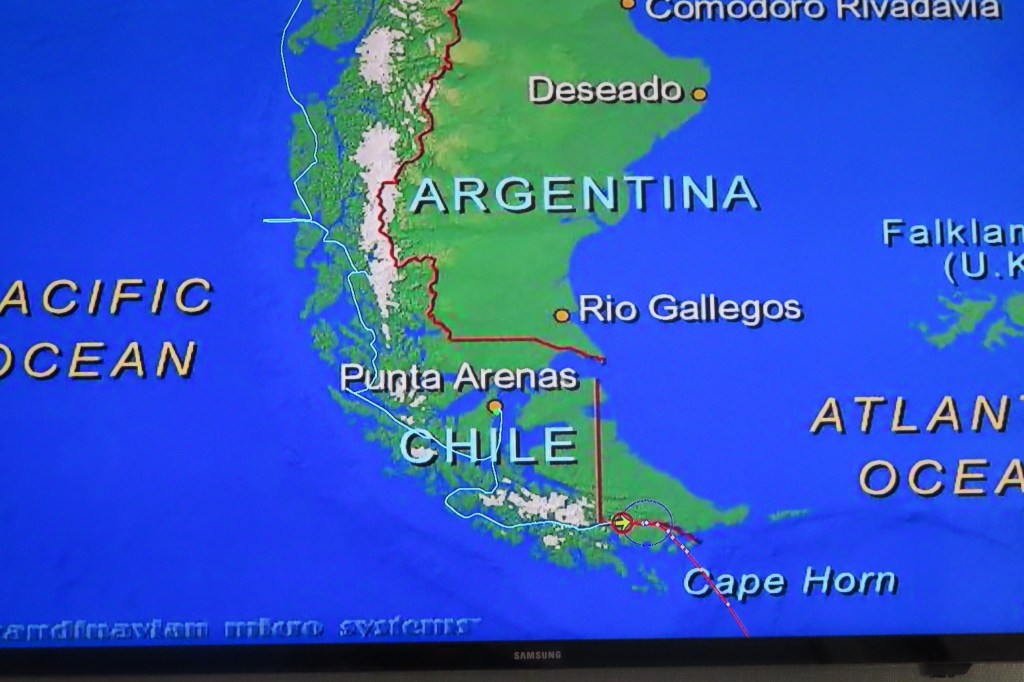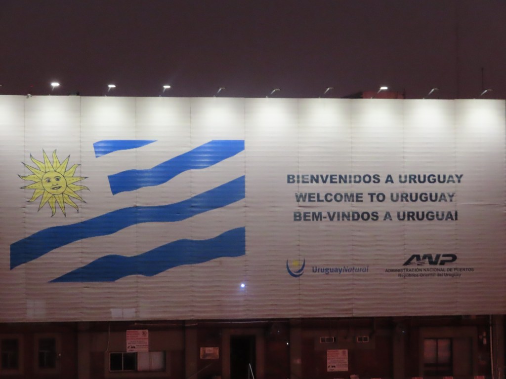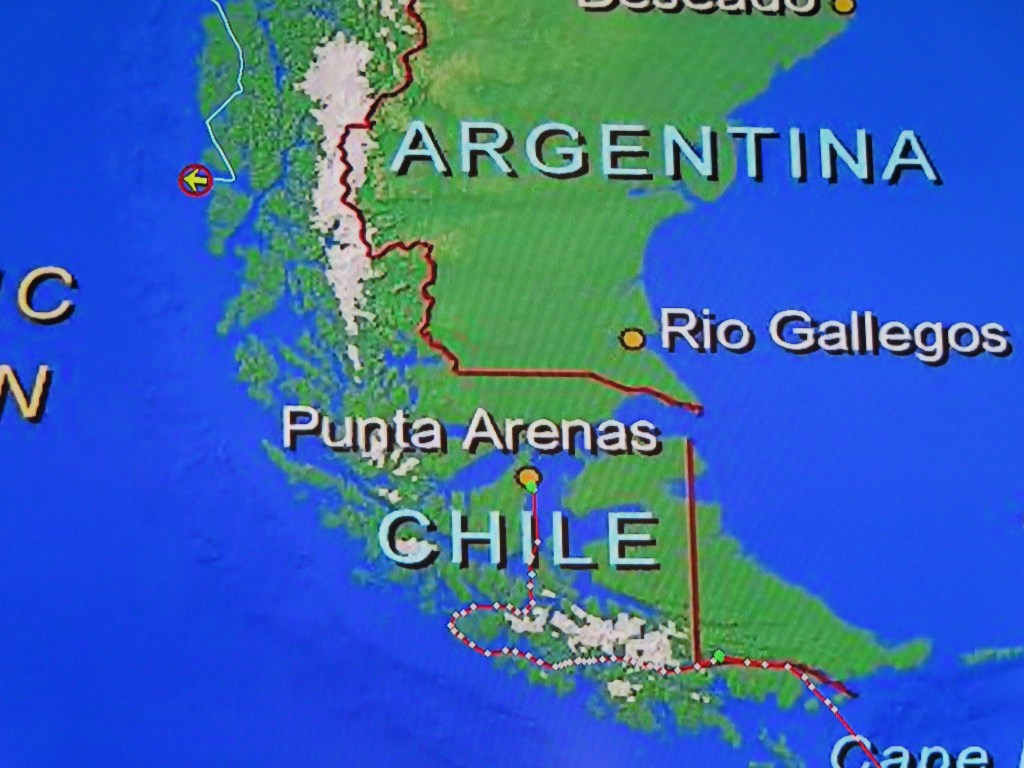 Mission accomplished at the local mercado. Uno Argentinian and Uno Chilean for our stateroom stash for veinte do’lares!