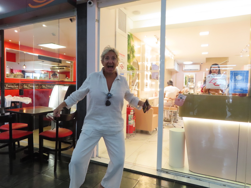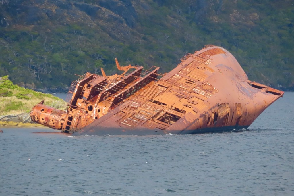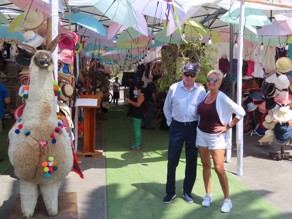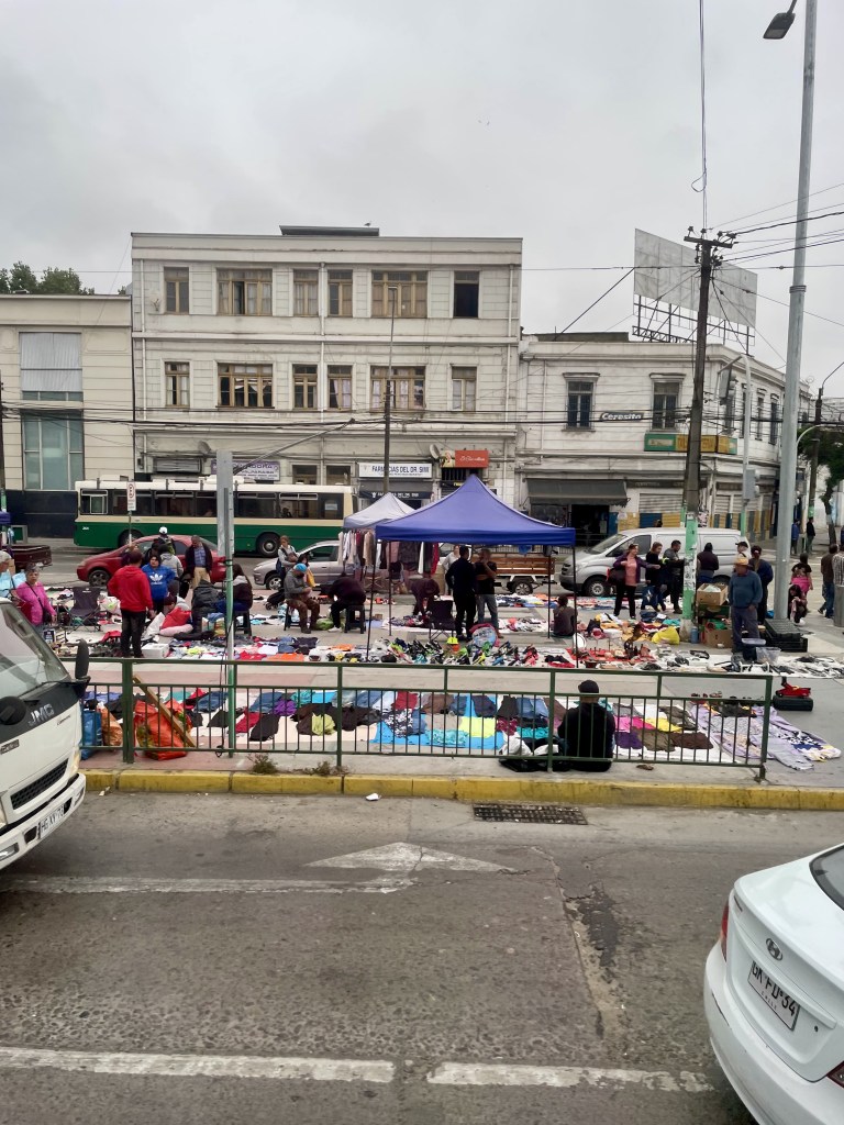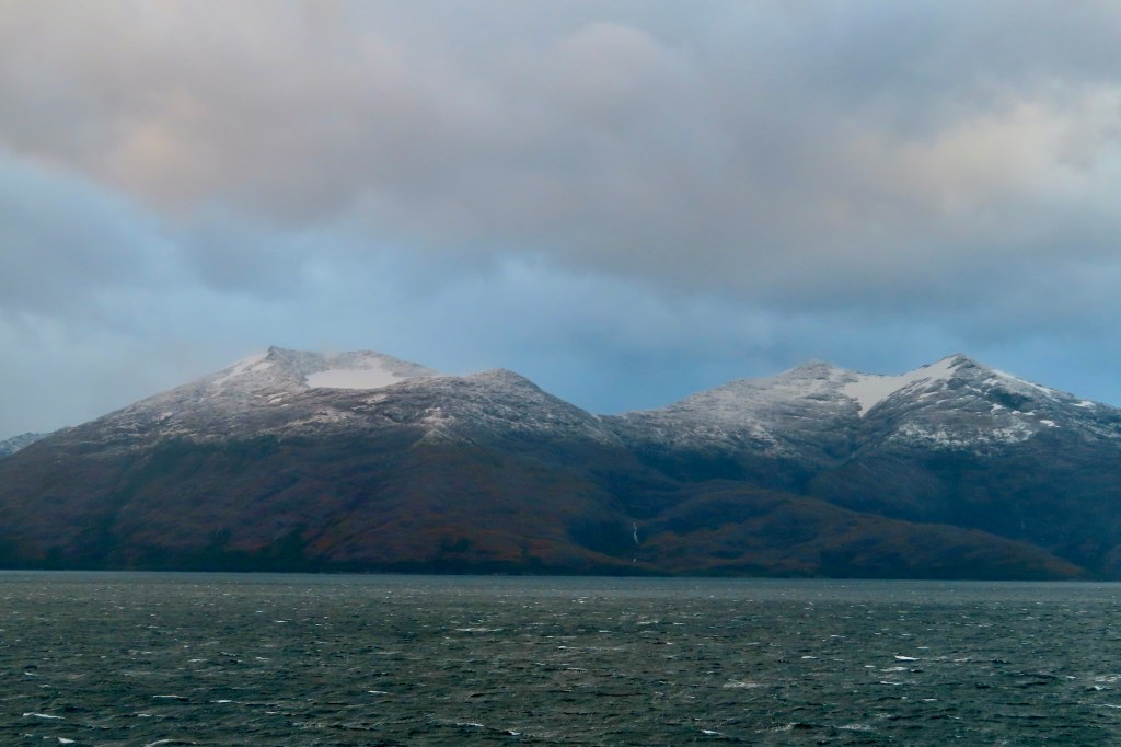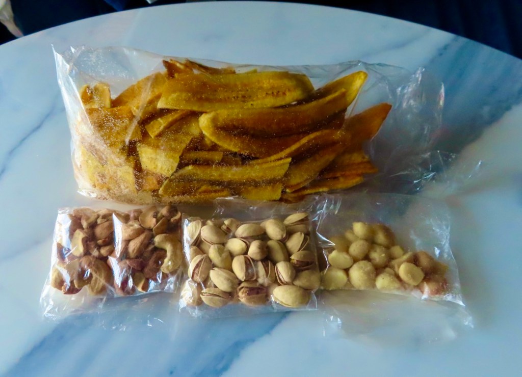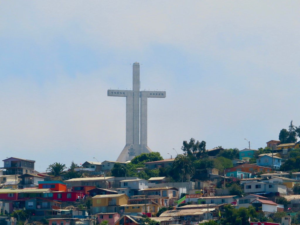 Mission accomplished at the local mercado. Uno Argentinian and Uno Chilean for our stateroom stash for veinte do’lares!