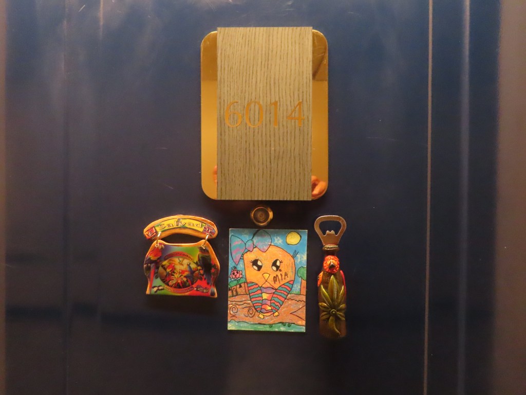 We couldn’t fit her in my overpacked luggage so we brought the adorable magnet she made for me for my Birthday and it is now on our cabin door. Thank you Mia!!!