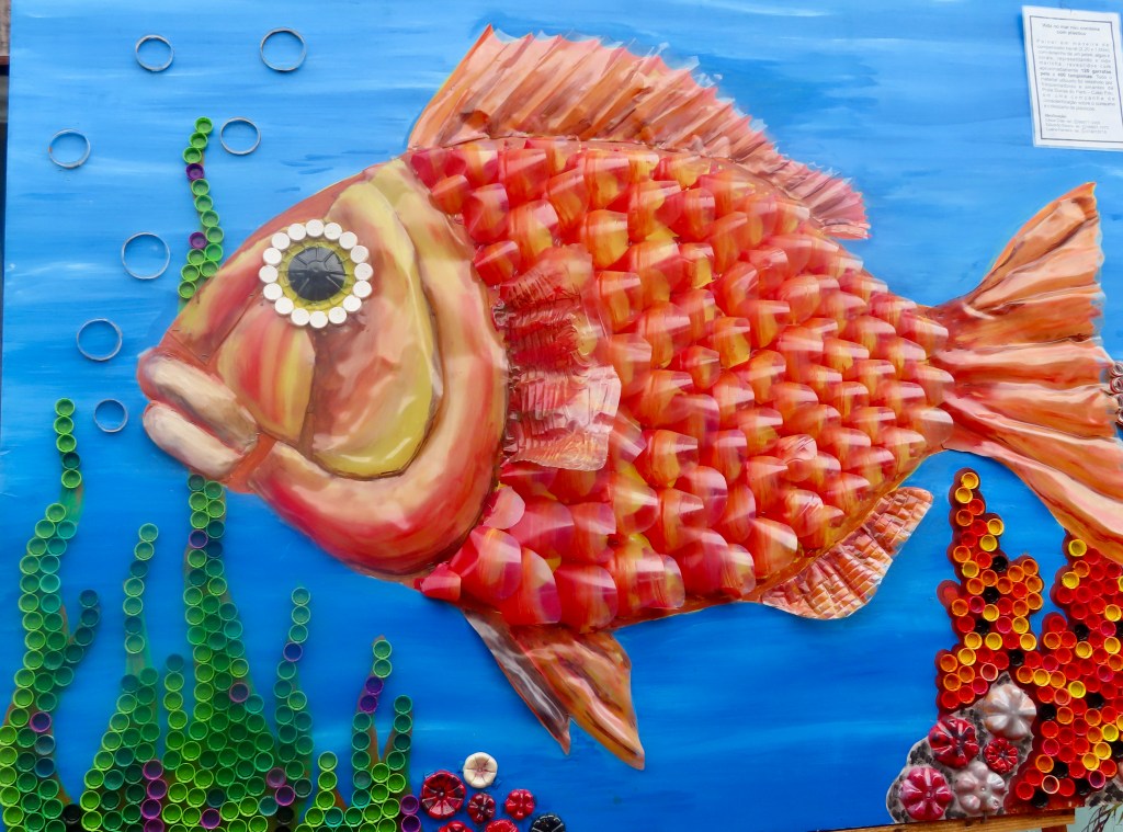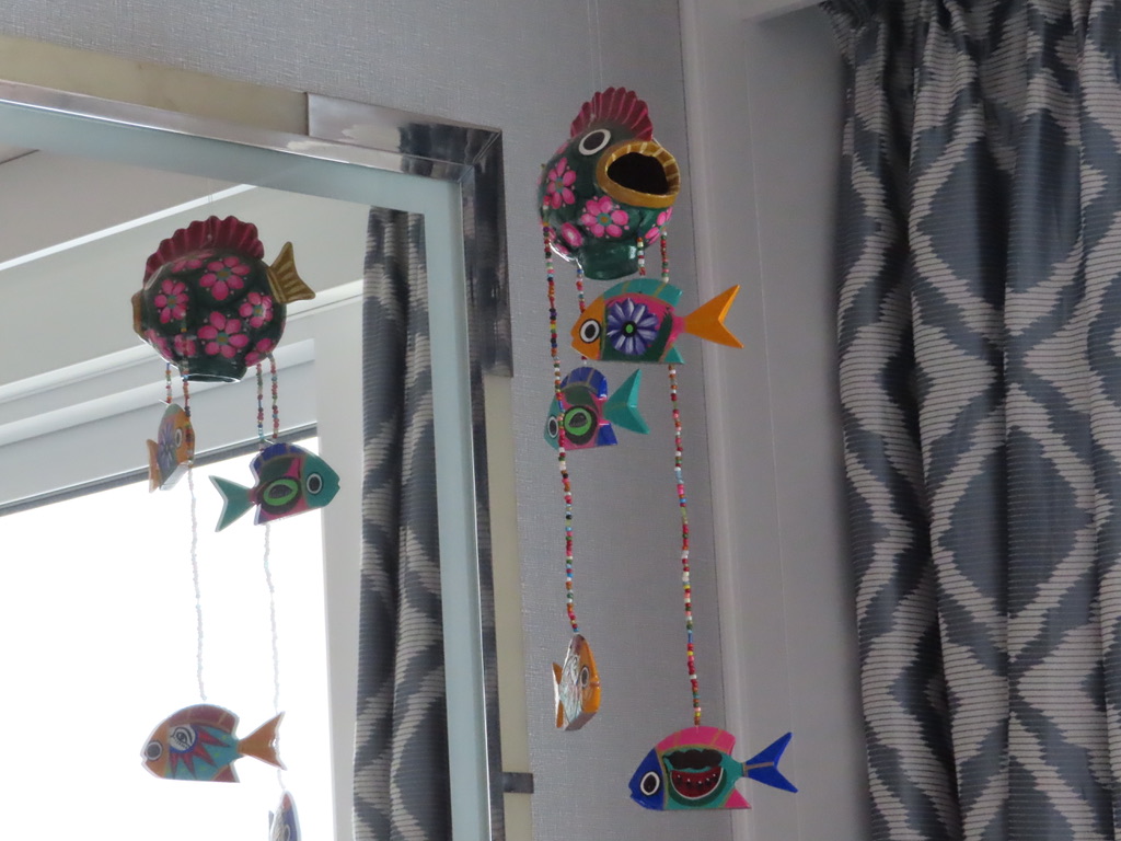 Bought a paper mache’ fish mobile for our patio and some local wine. JD trying to build an inexpensive wine cellar in our room.