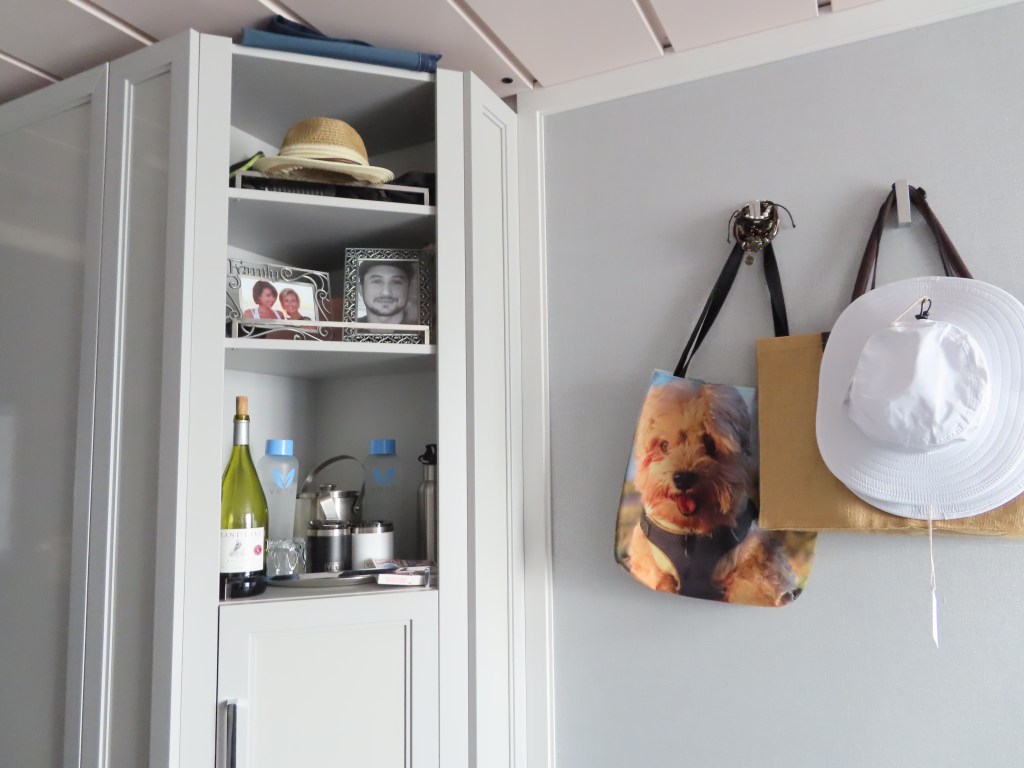 Our room is starting to feel like home with pics of the kids and our Teddy beach bag.