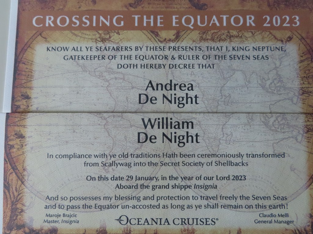 JD has given me the distinction of being the youngest around the world cruiser onboard Insignia. Lol. He’s not to far from being the youngest too 🙂