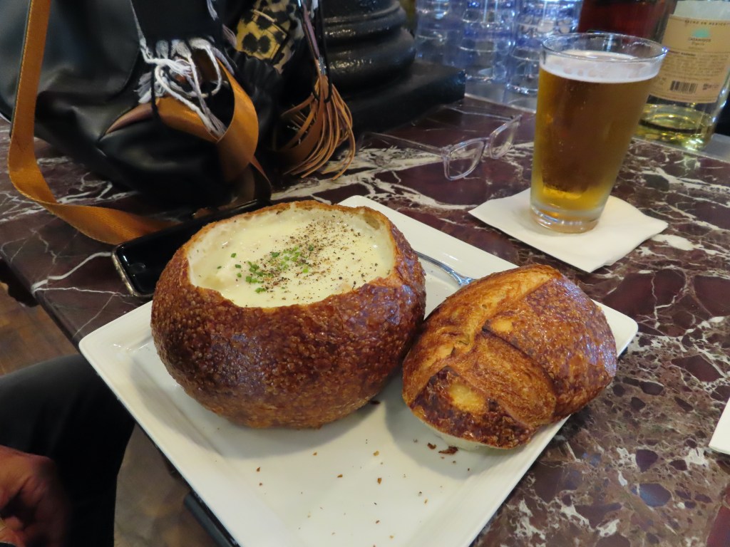 Although we were stuffed, had to experience the city’s famous sourdough bread, clam chowder bowl at Boutin’s Sour Dough bakery and bar.