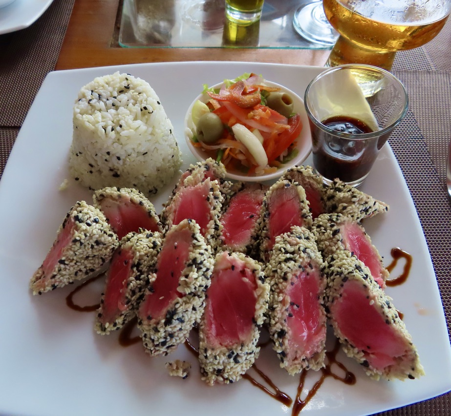 The featured dinner tonight is fish Al fresco with locally caught Mahi.