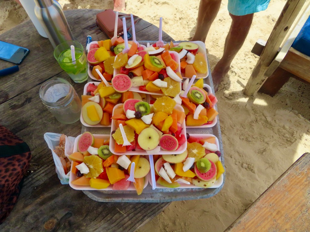 We were set up for lunch with a $10 rental for two chaises on the beach along with an umbrella (what a deal!!).