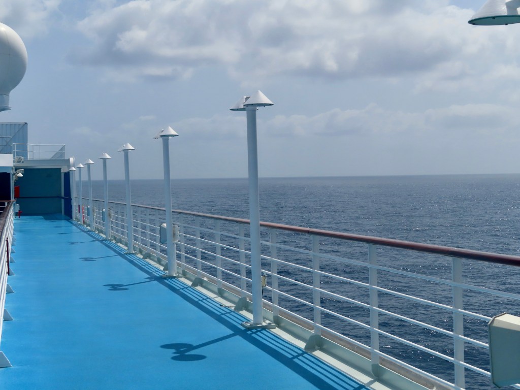 We’ve stuck to our daily work-out program and have been surprised at how many people on the ship are working out in the gym and stay very active around the jogging track.