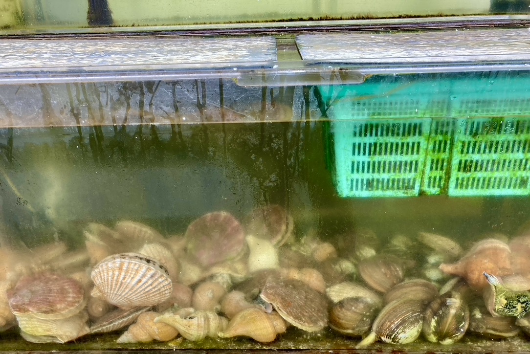 We noticed a gentleman coming out of the bay with mask and snorkel and bags of oysters that he gathered from the oyster beds under a bridge.