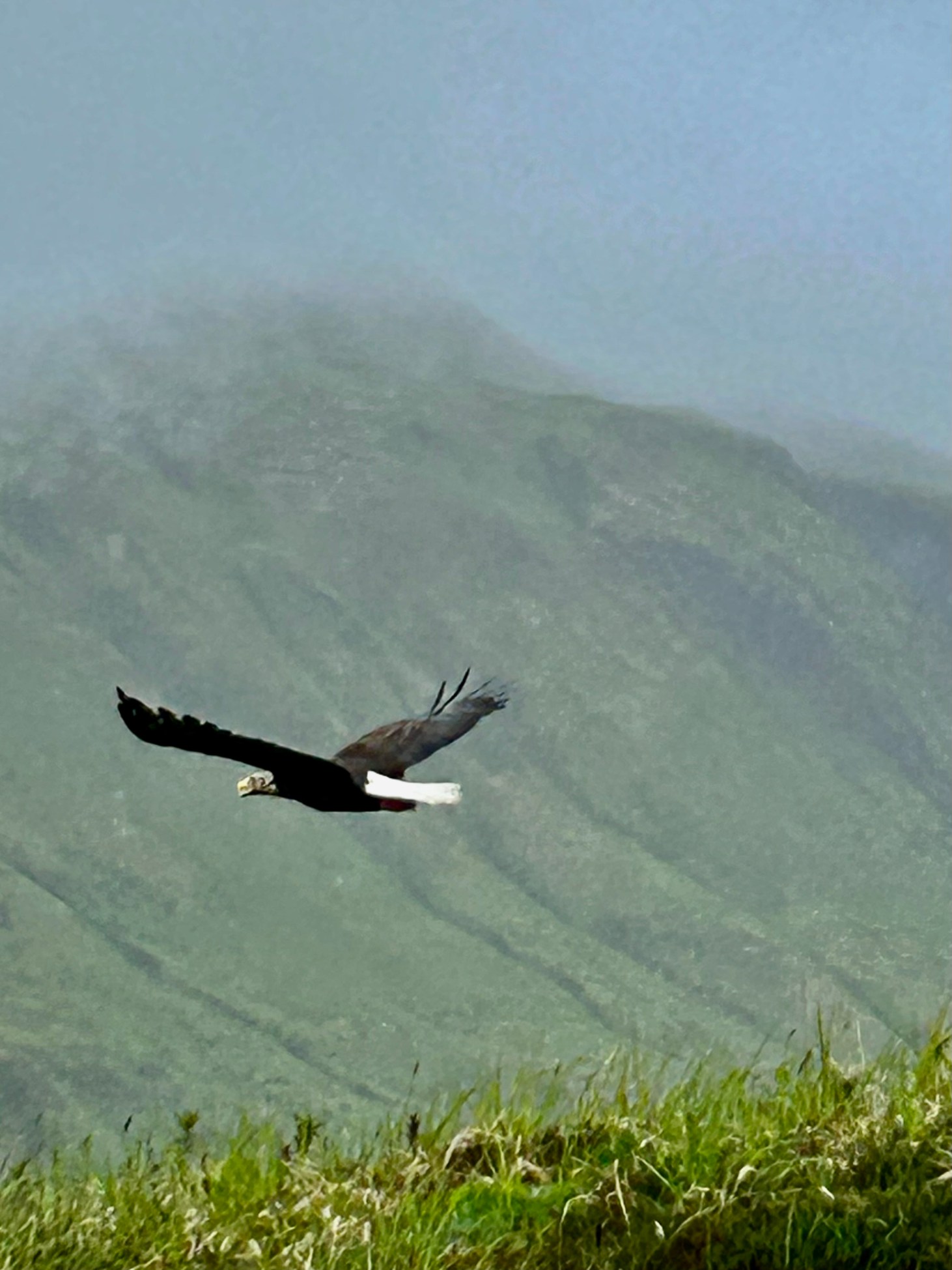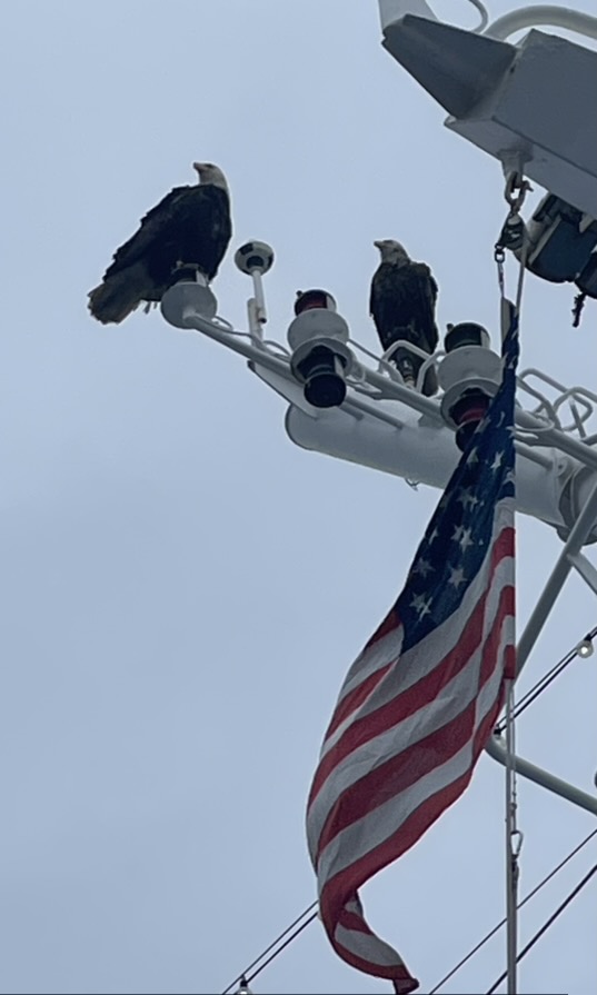 However, our national bird, the bald eagle , flew onto to our ship and perched on our bow mast. That was a great welcome.