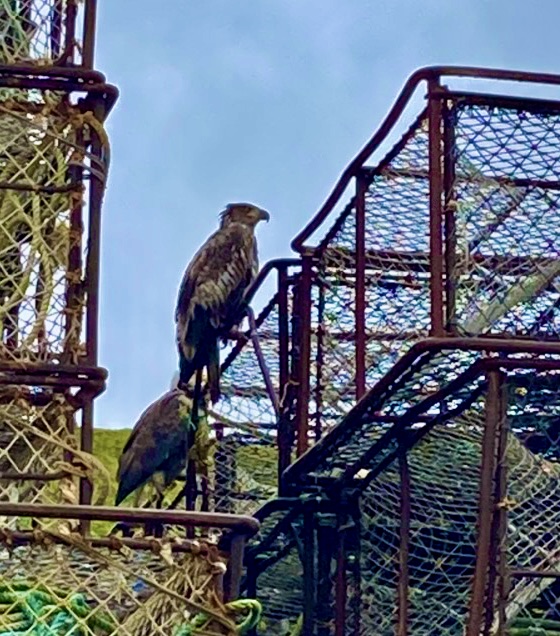 Then, we saw our guy below. Probably enjoying the smell of crab on this crab pot perch.