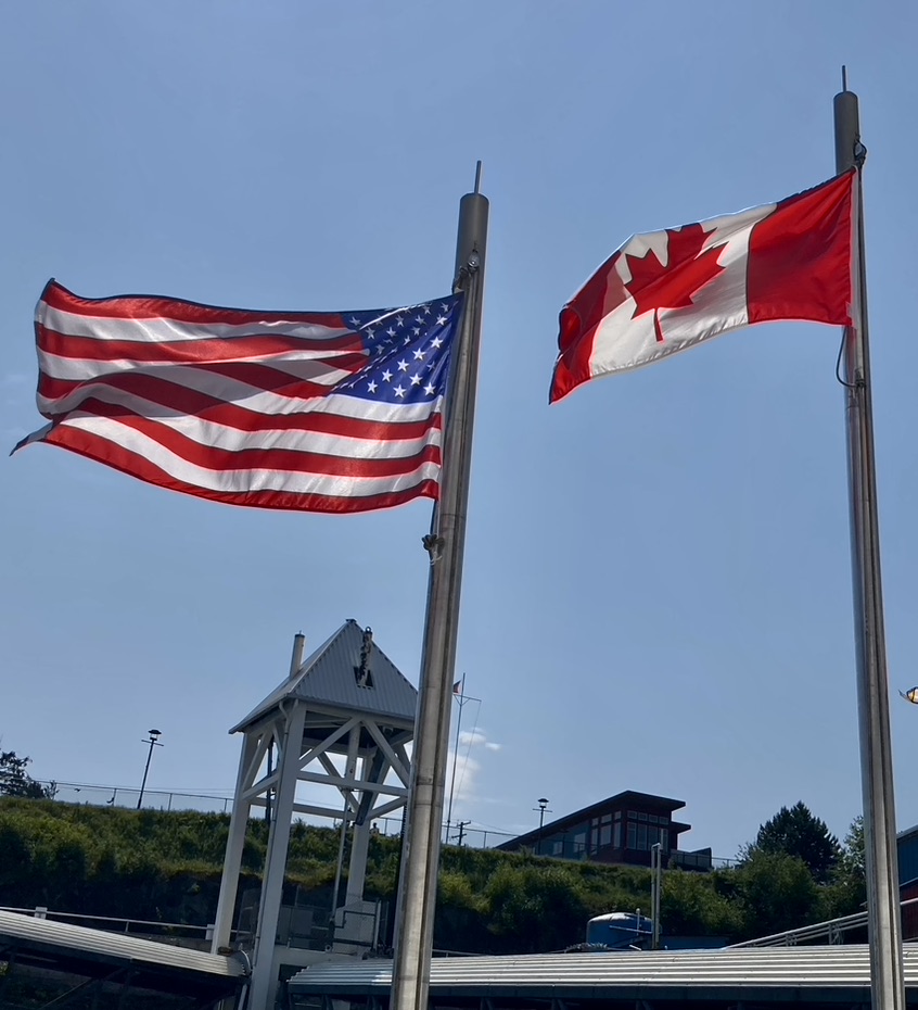 Pulling into our neighbor’s country of Canada! The Maple Leaf flag is now off the aft section of our ship, Insignia.