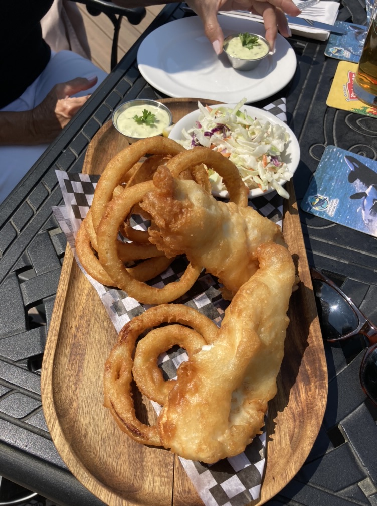 Halibut and black cod in the fish & chips. Local Alaskan brew too. Yum